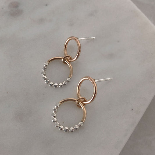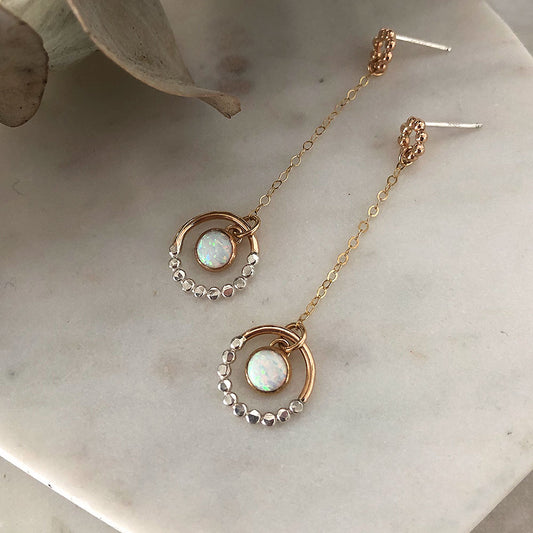 Mixed Metal Prism Circle Opal Dangle Earrings