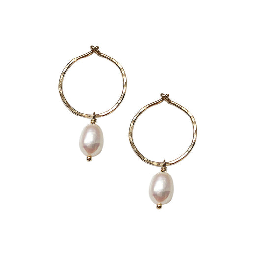 Small Pearl Hoops - Gold-fill