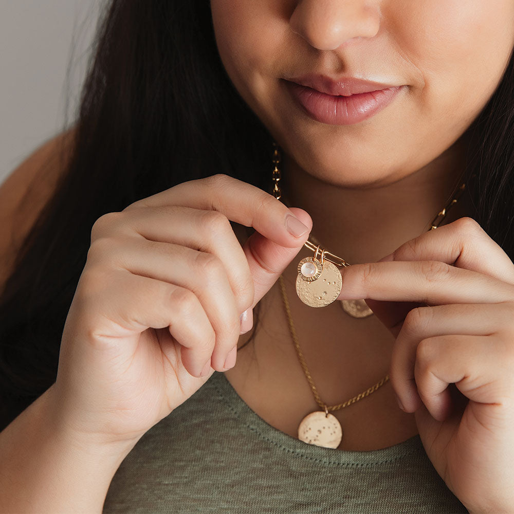 We work in .925 sterling silver and 14k gold fill, which means your jewelry is perfect for daily wear. Read more about our materials.