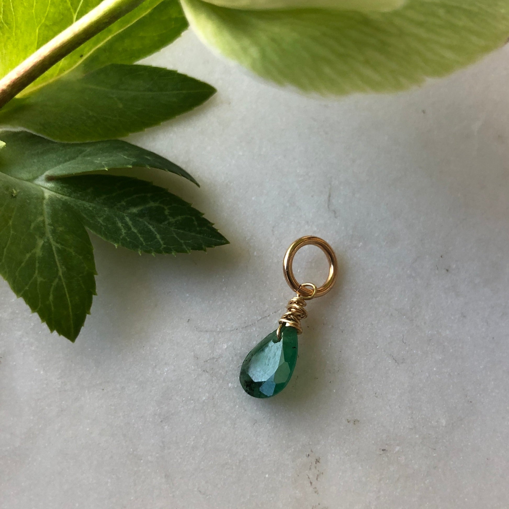 These gorgeous faceted emerald teardrops add a pop of colour and dimension to your charm stack. Add one to your chain, or pair two for a modern addition to your hoop earrings.