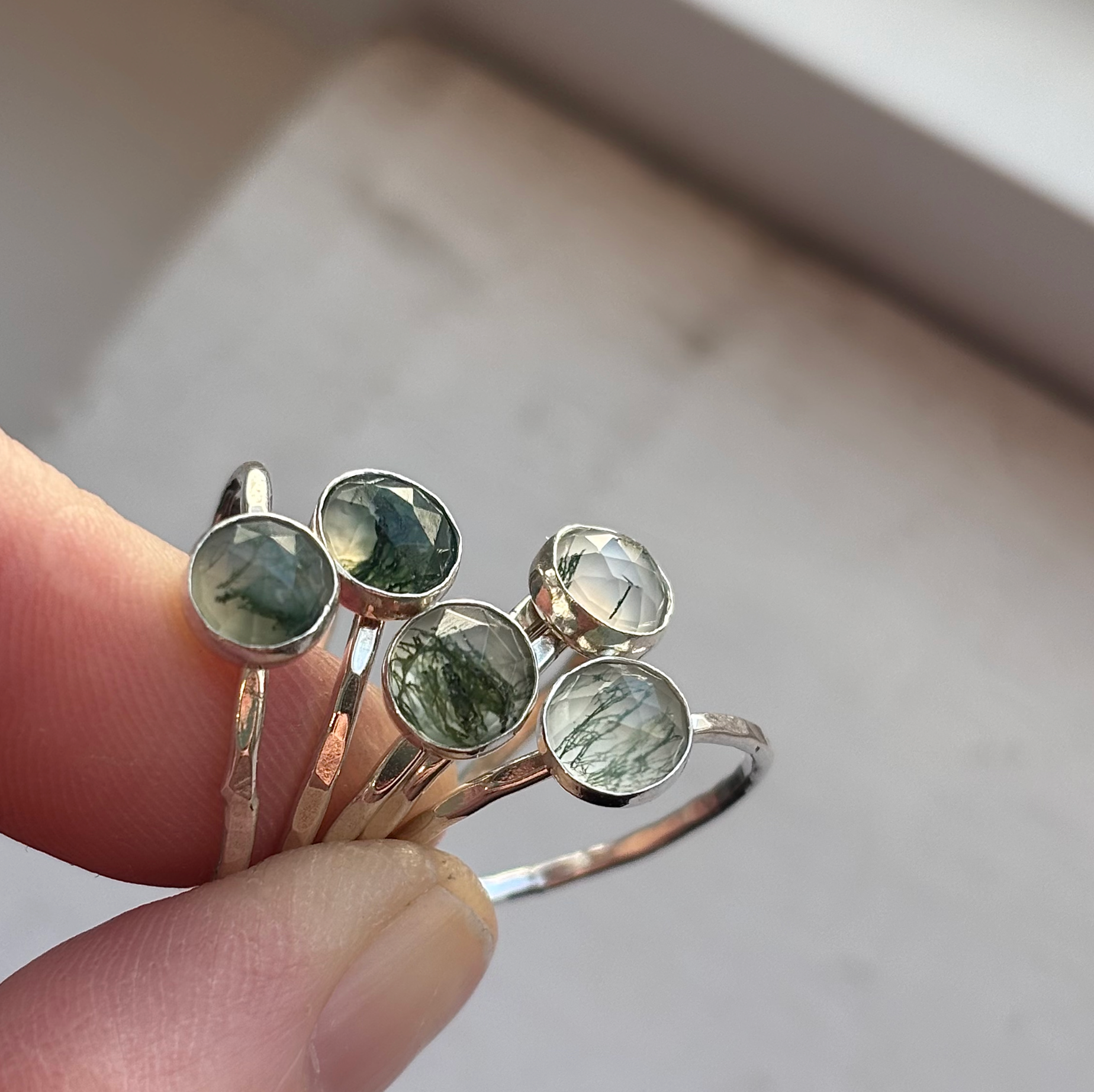 Gorgeous ring. Well made. The band itself is hammered so that adds an extra sparkle. The moss agate is stunning. Can’t stop looking at it.