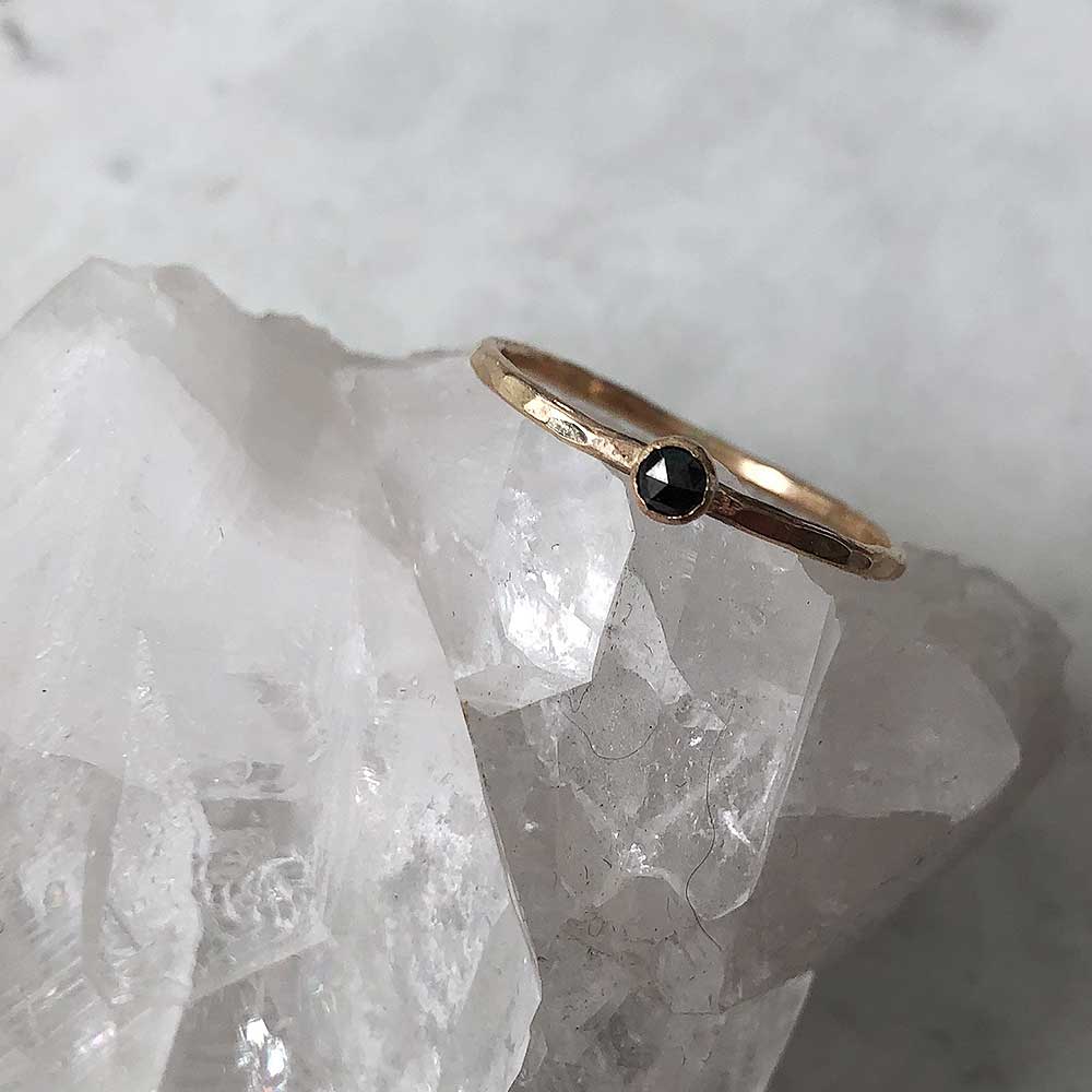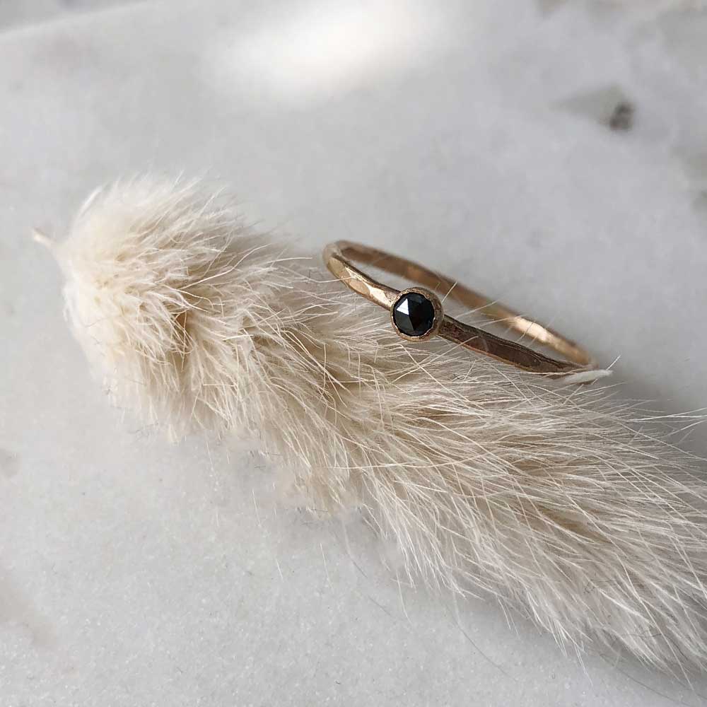 Petite Black Diamond Stacking Ring - 14k gold-fill