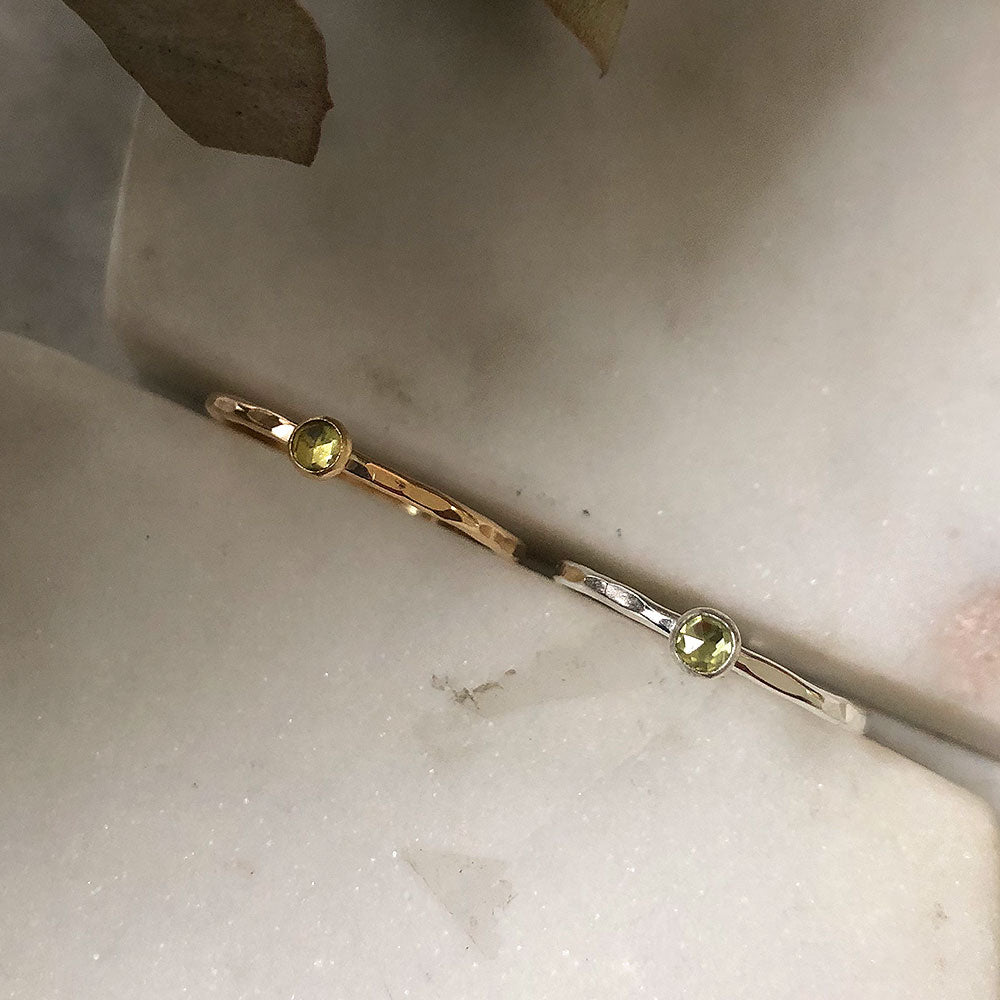 Between writing emails and reaching for that third cup of coffee, you never stop looking at your hands. So why not adorn them with something that makes you feel good? Our peridot stacking ring is the perfect fit for any outfit.