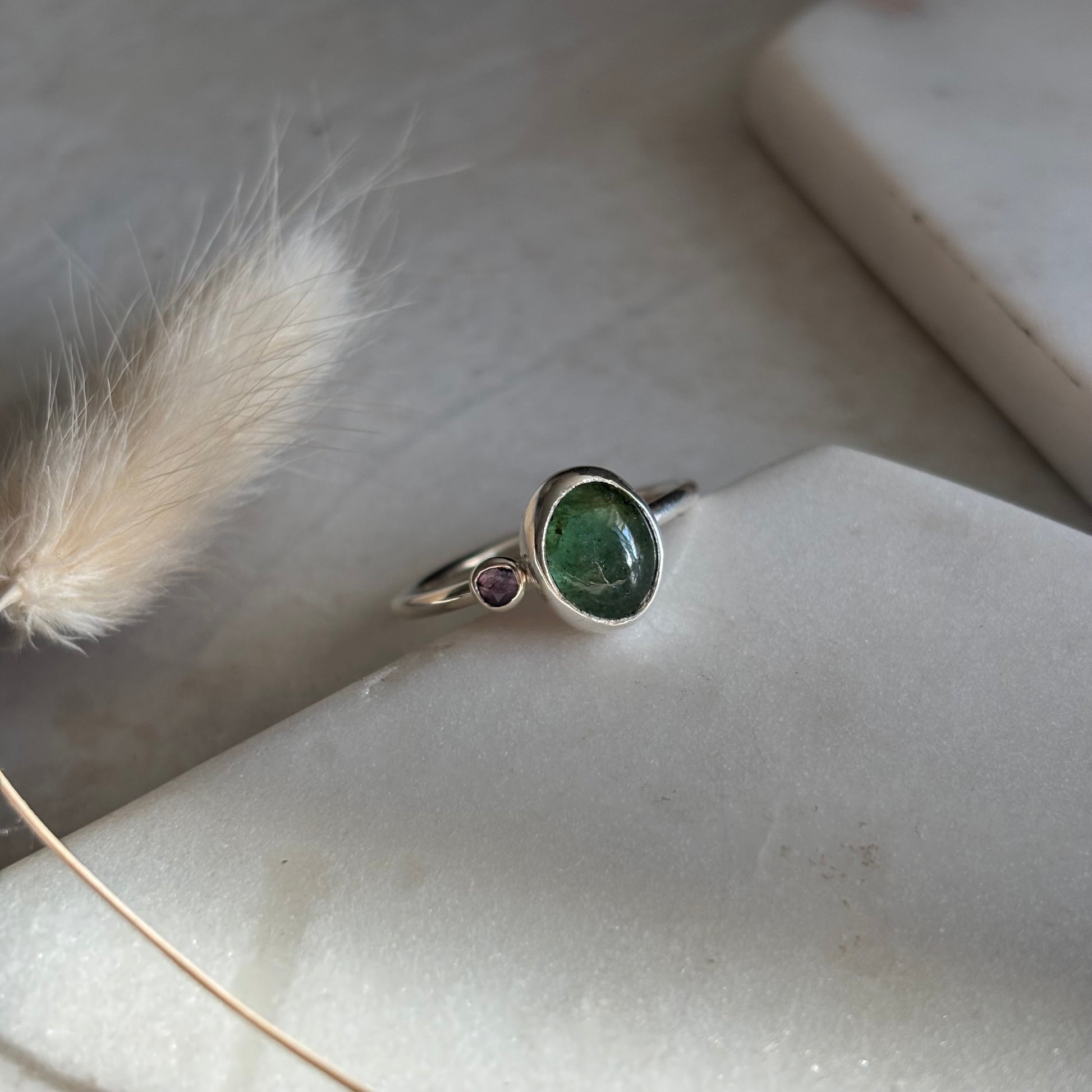 Smooth Emerald + Tanzanite Ring - Size 8.5