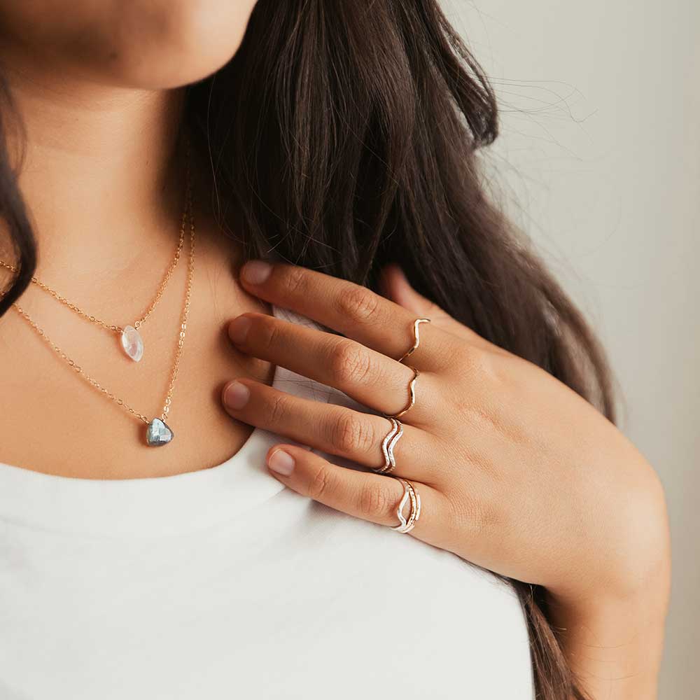 We work in .925 sterling silver and 14k gold fill, which means your jewelry is perfect for daily wear. Read more about our materials.